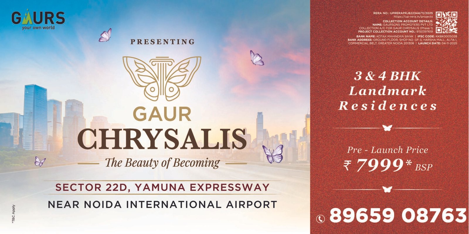 Gaur Chrysalis Yamuna Expressway Project is 15min From Upcoming Film City.