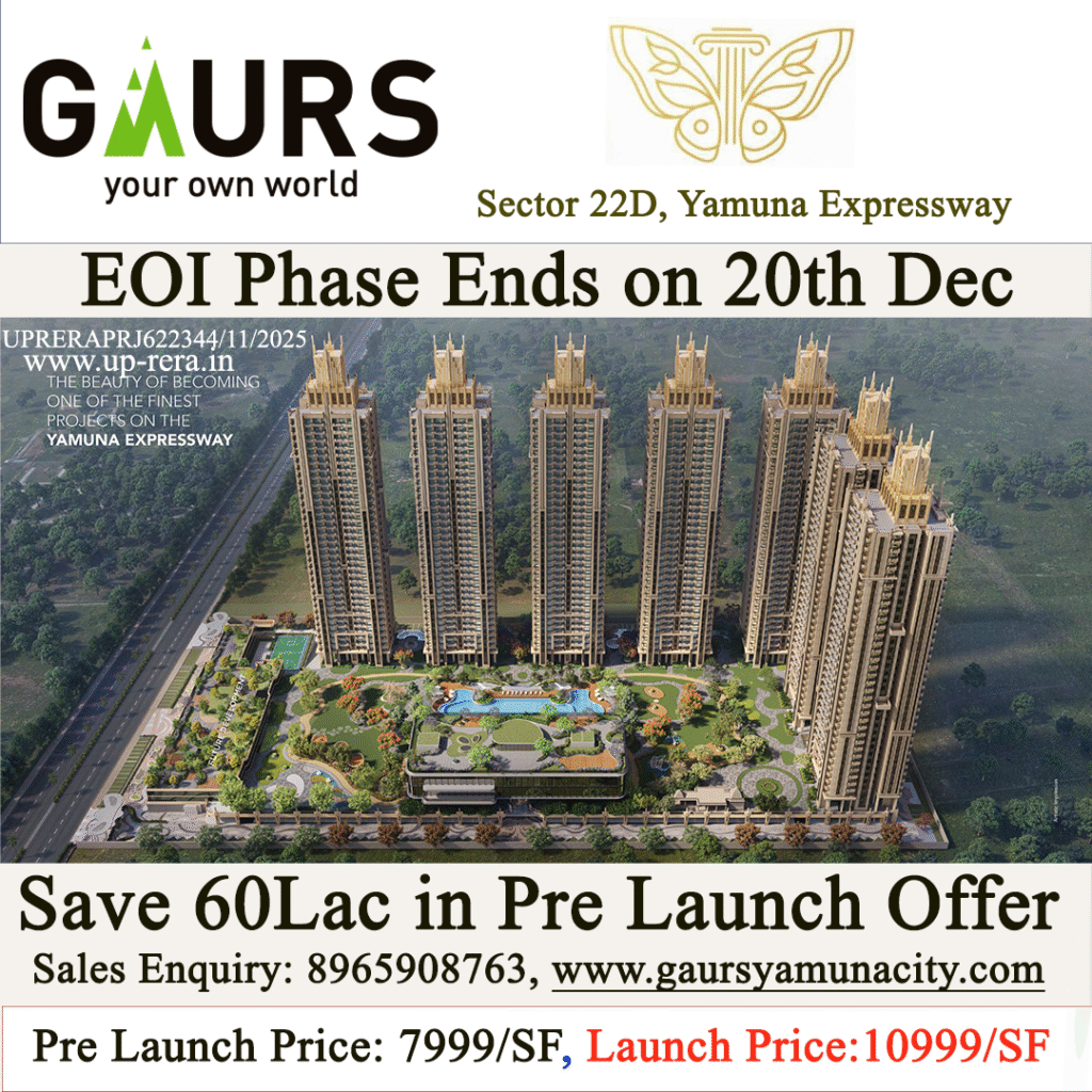 Sector 22D on the Yamuna Expressway is fast becoming the new growth corridor of NCR, and Gaursons is right at the center of this transformation. With the upcoming Jewar International Airport, Film City, and tech & business hubs, this address is more than just a residential choiceâit’s a future-ready investment. At Gaur Sector 22D, you’ll find homes designed for today’s lifestyle and tomorrow’s opportunities. Whether you’re choosing a 3 BHK for modern family living or a spacious 4 BHK for luxury and comfort, every apartment is built with smart layouts, world-class amenities, and a community that’s thoughtfully planned.
