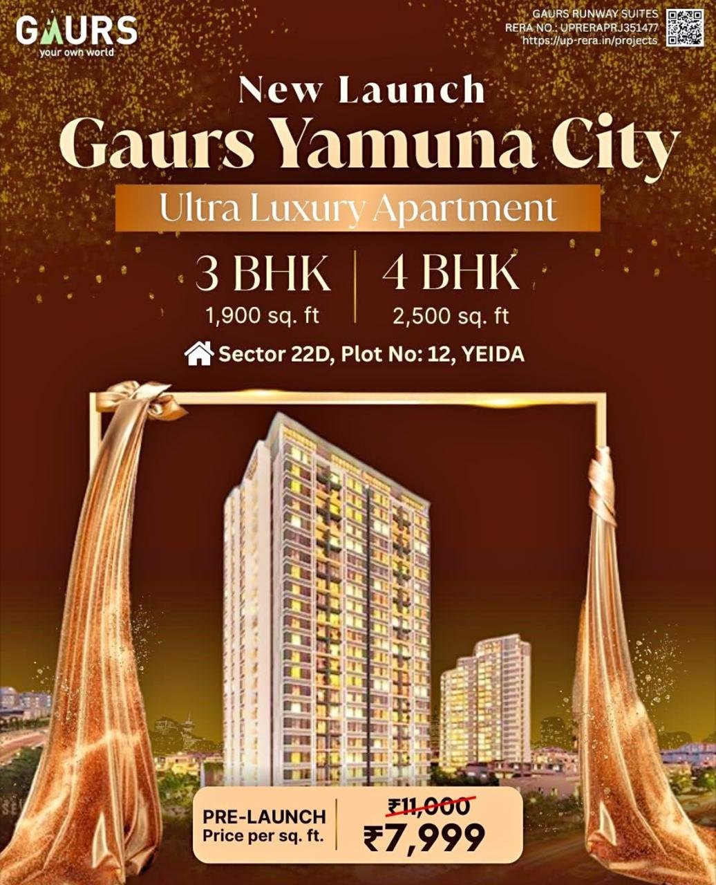 Sector 22D on the Yamuna Expressway is fast becoming the new growth corridor of NCR, and Gaursons is right at the center of this transformation. With the upcoming Jewar International Airport, Film City, and tech & business hubs, this address is more than just a residential choice—it’s a future-ready investment. At Gaur Sector 22D, you’ll find homes designed for today’s lifestyle and tomorrow’s opportunities. Whether you’re choosing a 3 BHK for modern family living or a spacious 4 BHK for luxury and comfort, every apartment is built with smart layouts, world-class amenities, and a community that’s thoughtfully planned.